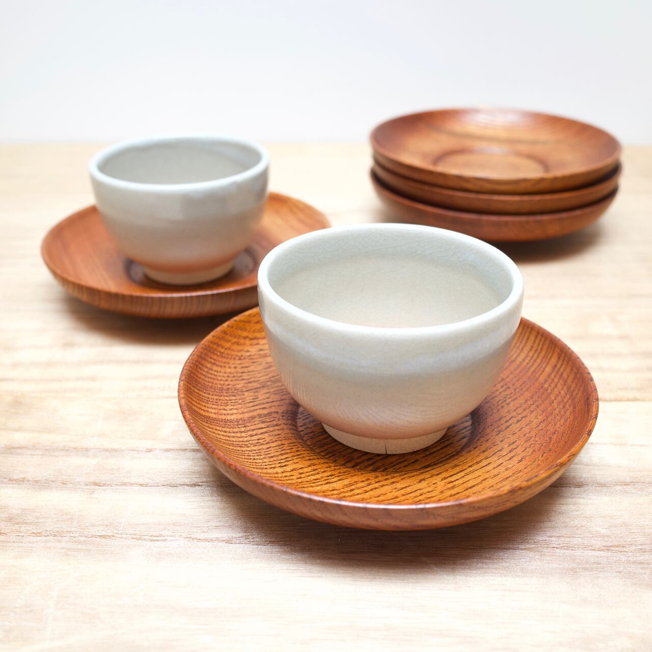 茶碗だけでなく、ソーサーとしてコーヒーカップを乗せても使用できます。茶托(ソーサー)を使うと、カップの熱や擦れ、飲み物の垂れから、テーブルを保護できます。