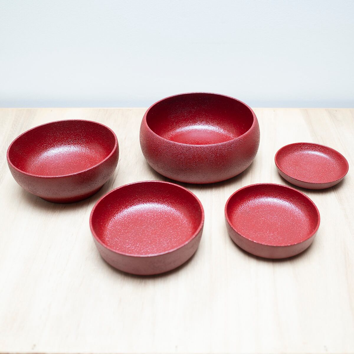 スタッキングボウル〈乾漆〉朱(5個組) -子供からずっと使える漆器-